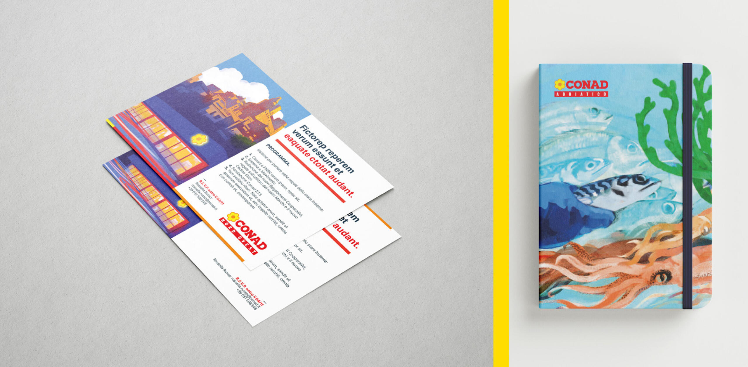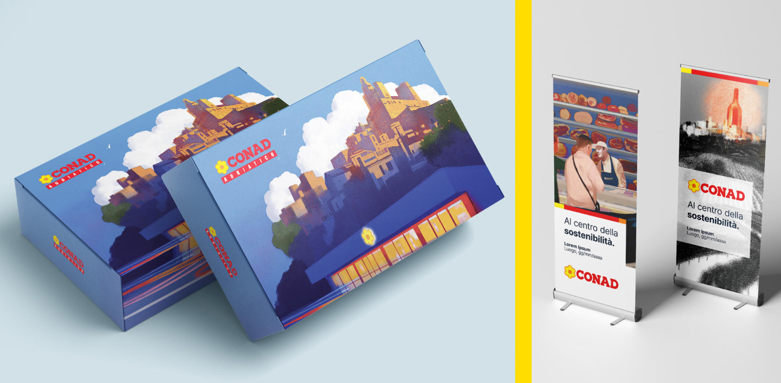 Ho curato l’intero restyling della brand identity corporate di Conad Italia, definendo tipografia, palette cromatica e template grafici. Ho progettato il sistema di iconografia e infografia, ottimizzando la comunicazione visiva per il brand. Un lavoro complesso che ha richiesto una pianificazione ed esecuzione meticolosa in ogni dettaglio.