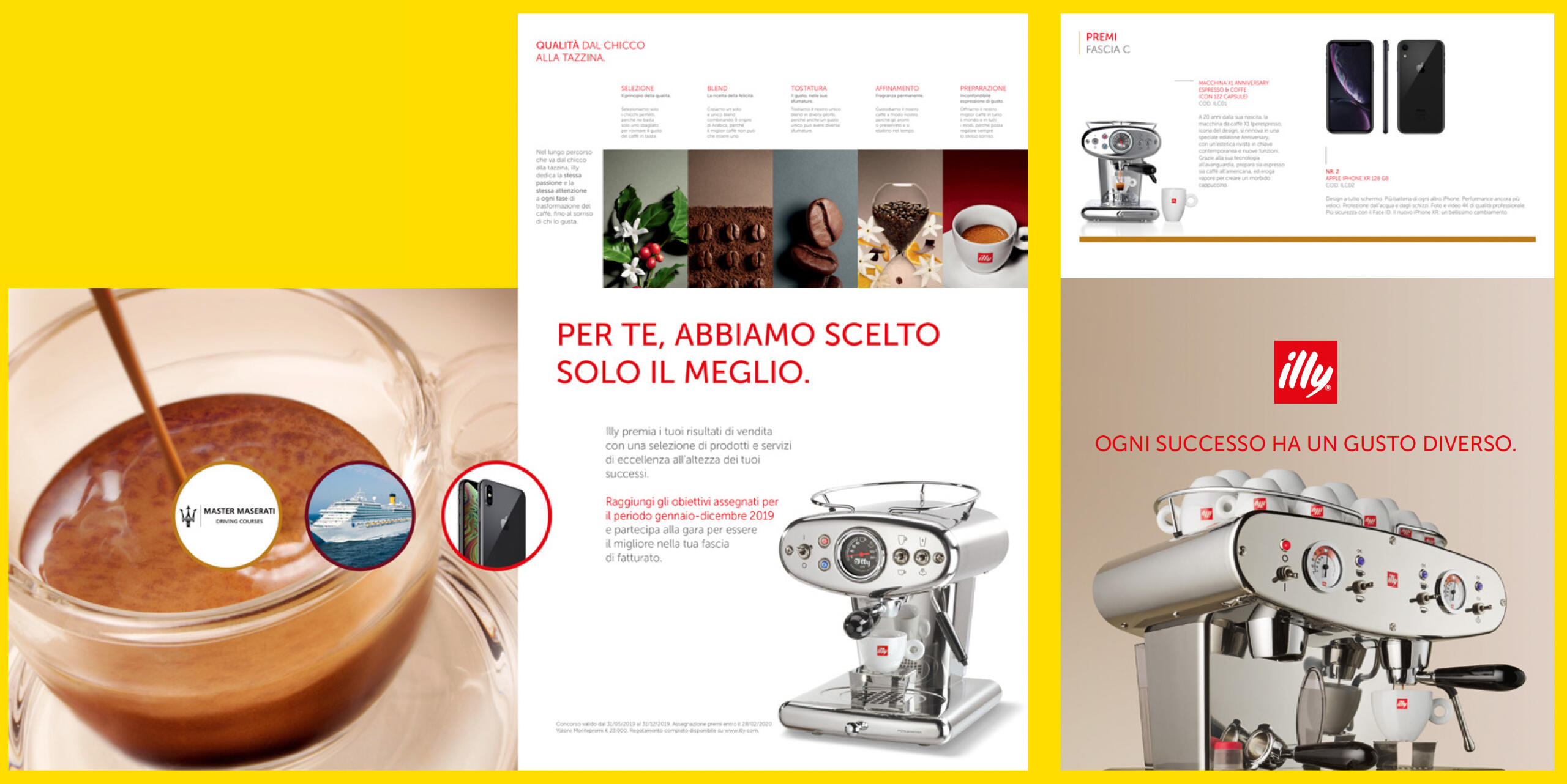 Ho curato la creazione del catalogo premi per Illy, sviluppando grafica e impaginazione per presentare la gamma di articoli. Ho definito le scelte editoriali e la gerarchia visiva dei contenuti, rispettando l’identità del brand. Un incarico che ha consolidato le mie competenze nella progettazione di materiali di marketing coordinati e d’impatto.